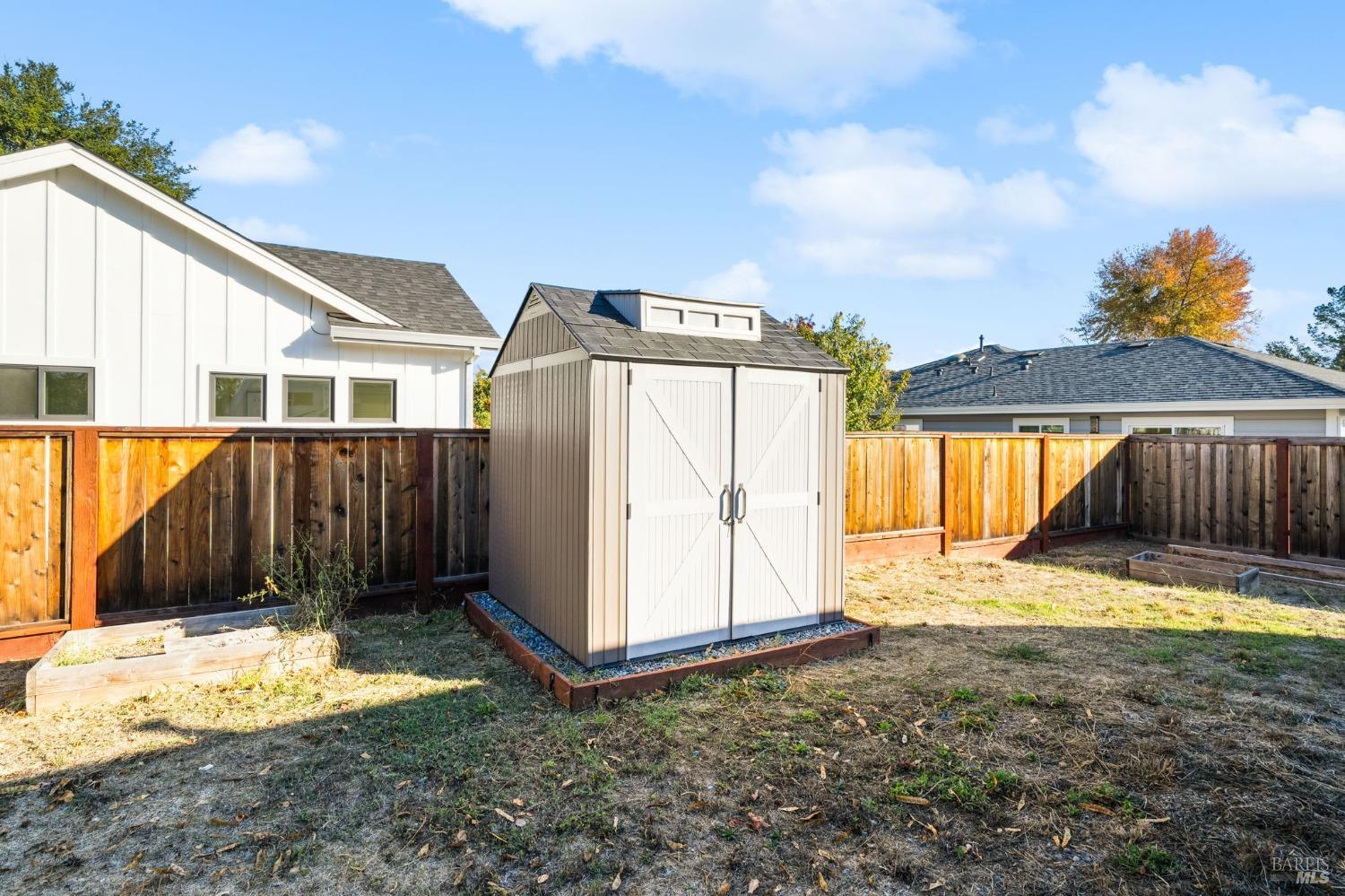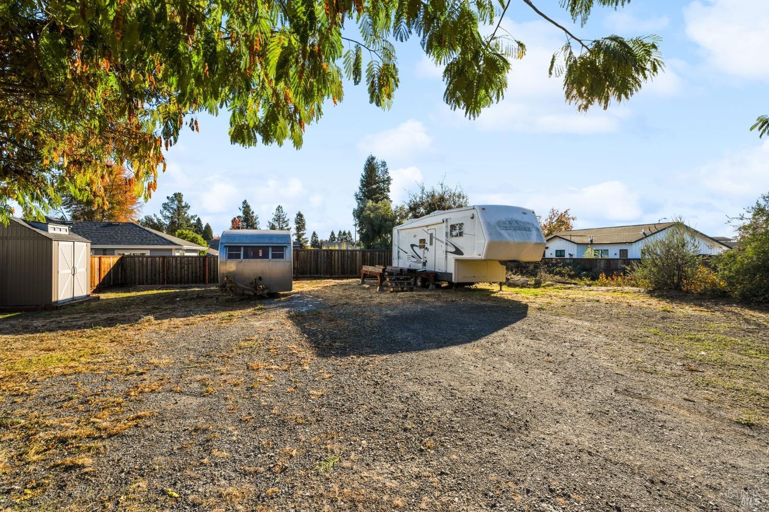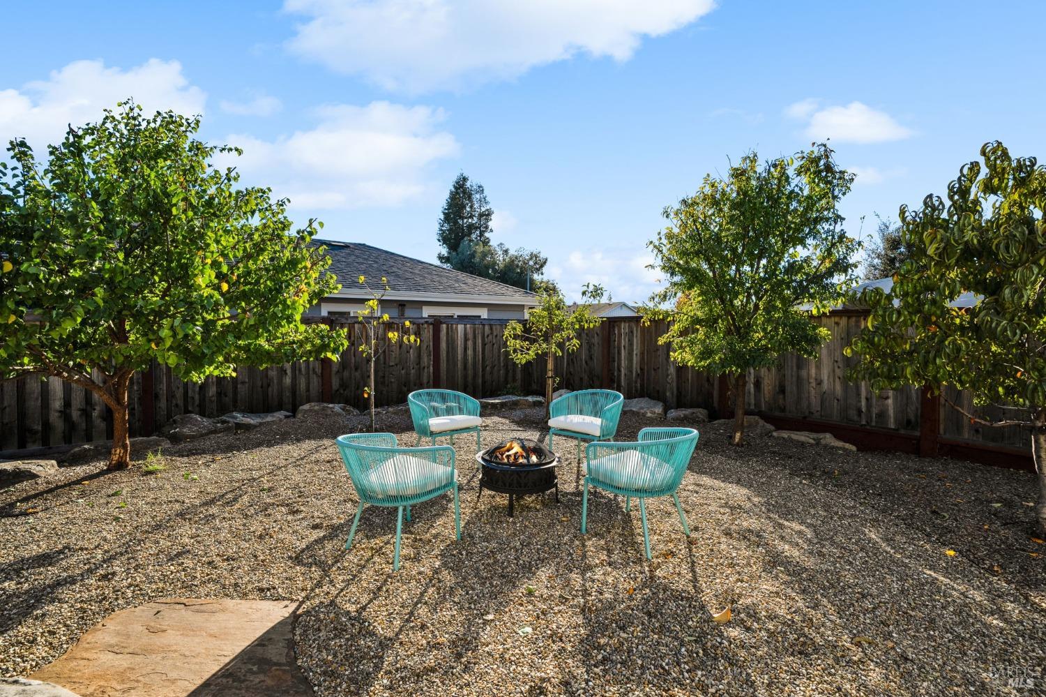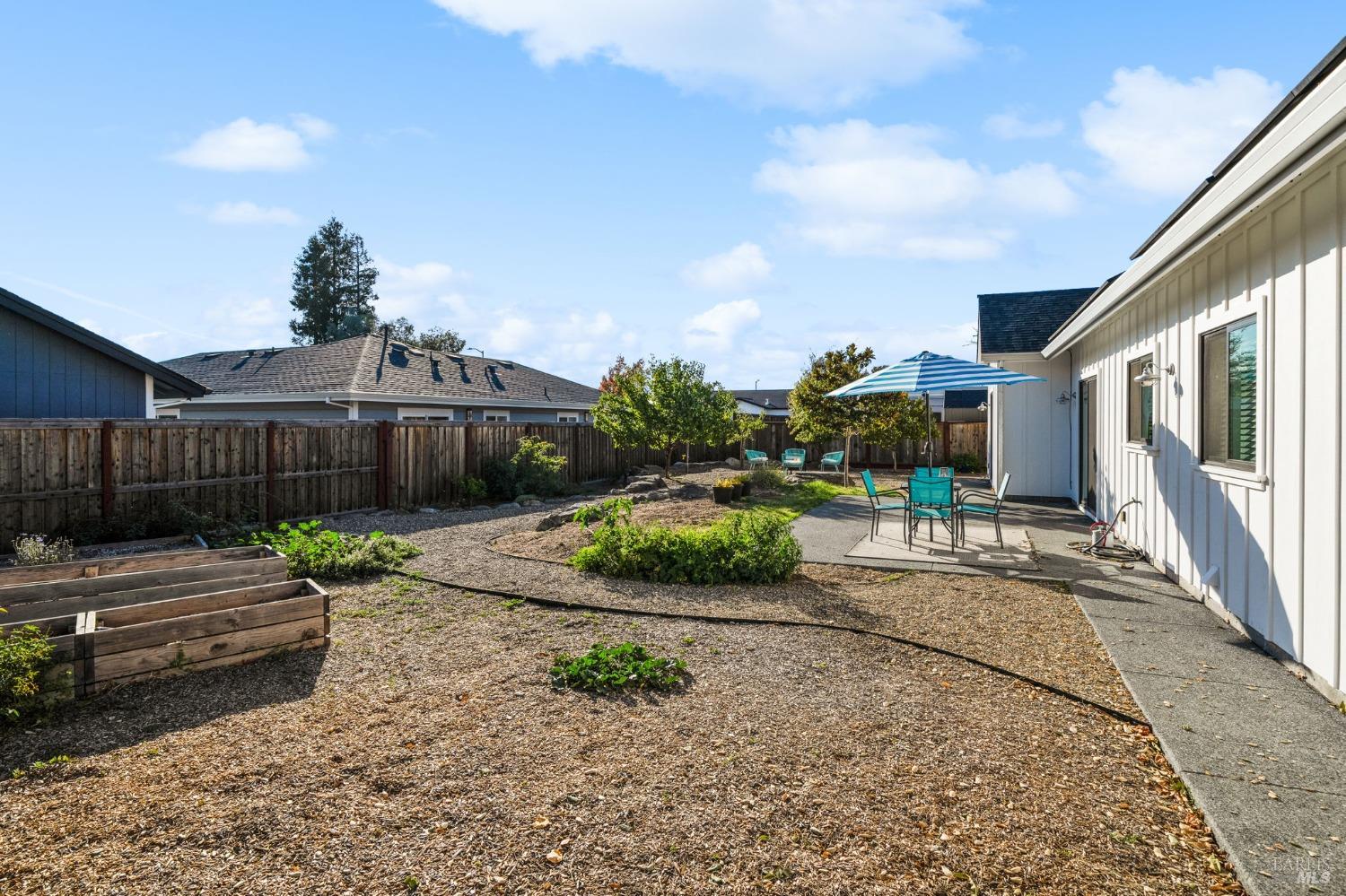 Attention Investors, Builders, and Those Seeking Privacy and Space! This custom-built 2-bedroom home, completed in 2021, is set on over half an acre, offering endless possibilities for expansion to add an ADU, gardens, or a pool. Located on a quiet lane near Coffey Park, it's conveniently close to schools, parks, and shopping, while providing ultimate privacy and views. The open floor plan features 9-foot ceilings, engineered hickory hardwood floors, and a bright, airy atmosphere. The kitchen includes granite countertops, a tiled backsplash, a large island, and soft-close cabinetry. Step outside to a private backyard with a spacious patio, redwood fencing, and mature fruit trees (apple, nectarine, pear, plum, apricot, pomegranate, cherry, and Meyer lemon). Raised garden beds are ready for planting. The primary bedroom has a walk-in closet and direct patio access, while the en-suite bath features custom-tiled flooring and a glass-enclosed shower. The second bedroom is generously sized, and the guest bath includes penny tile flooring and a subway-tiled tub/shower combo. Energy-efficient with central heat & air, all-electric utilities, and paid solar panels and pre-installed car charger in garage for low utility bills. Fridge NOT included, it was virtually added.