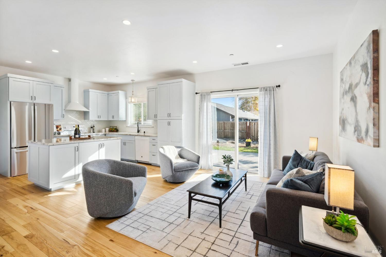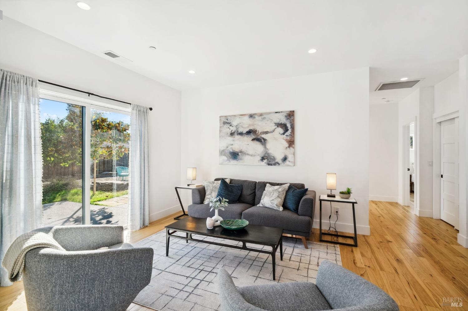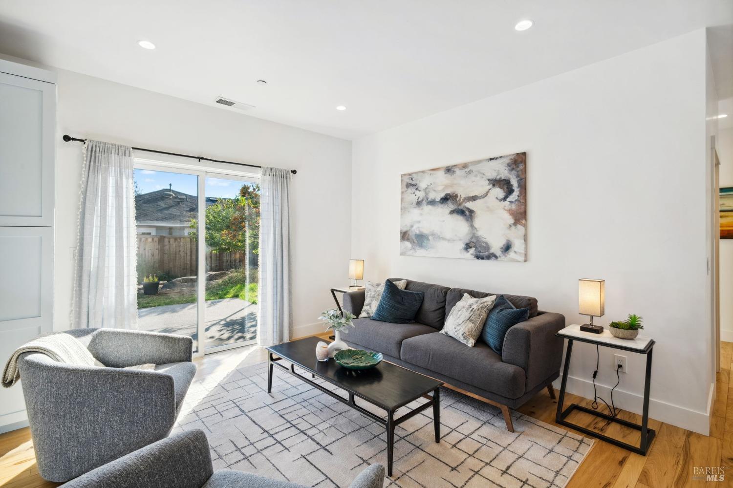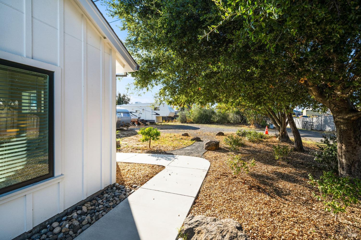 Attention Investors, Builders, and Those Seeking Privacy and Space! This custom-built 2-bedroom home, completed in 2021, is set on over half an acre, offering endless possibilities for expansion to add an ADU, gardens, or a pool. Located on a quiet lane near Coffey Park, it's conveniently close to schools, parks, and shopping, while providing ultimate privacy and views. The open floor plan features 9-foot ceilings, engineered hickory hardwood floors, and a bright, airy atmosphere. The kitchen includes granite countertops, a tiled backsplash, a large island, and soft-close cabinetry. Step outside to a private backyard with a spacious patio, redwood fencing, and mature fruit trees (apple, nectarine, pear, plum, apricot, pomegranate, cherry, and Meyer lemon). Raised garden beds are ready for planting. The primary bedroom has a walk-in closet and direct patio access, while the en-suite bath features custom-tiled flooring and a glass-enclosed shower. The second bedroom is generously sized, and the guest bath includes penny tile flooring and a subway-tiled tub/shower combo. Energy-efficient with central heat & air, all-electric utilities, and paid solar panels and pre-installed car charger in garage for low utility bills. Fridge NOT included, it was virtually added.