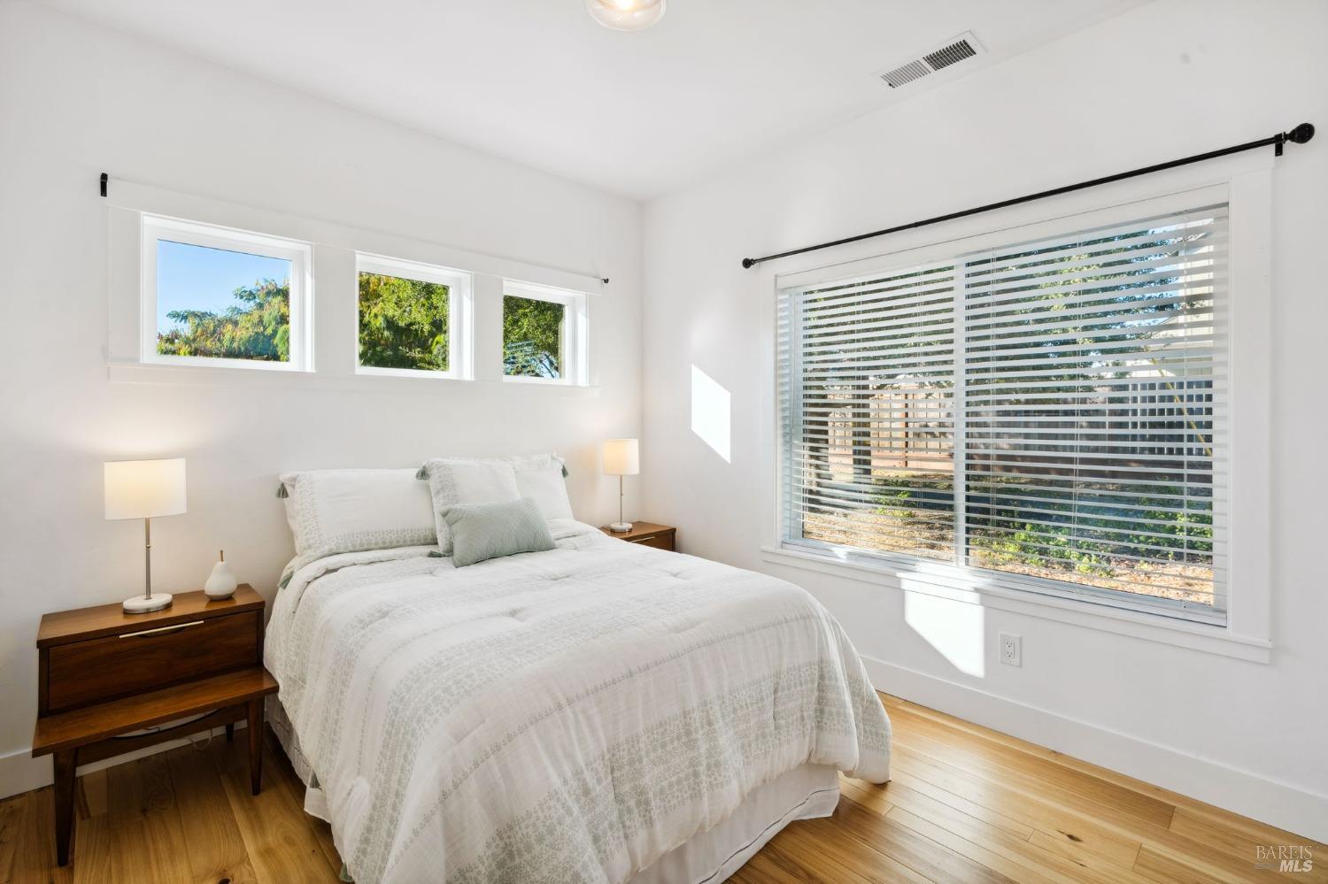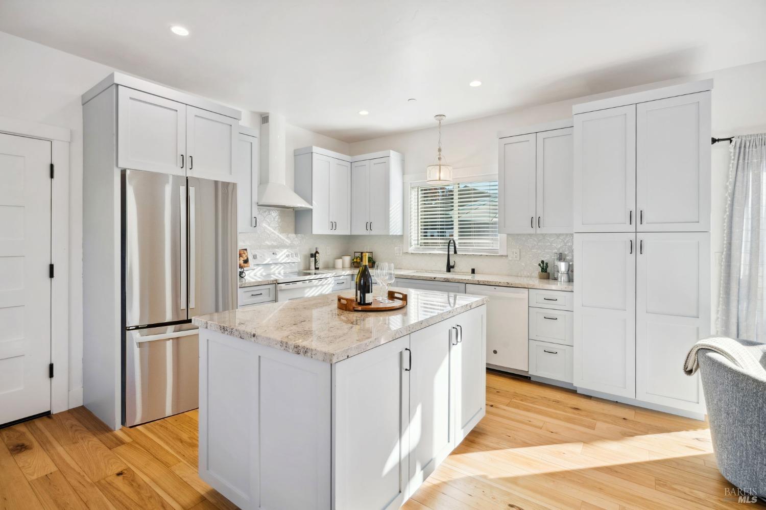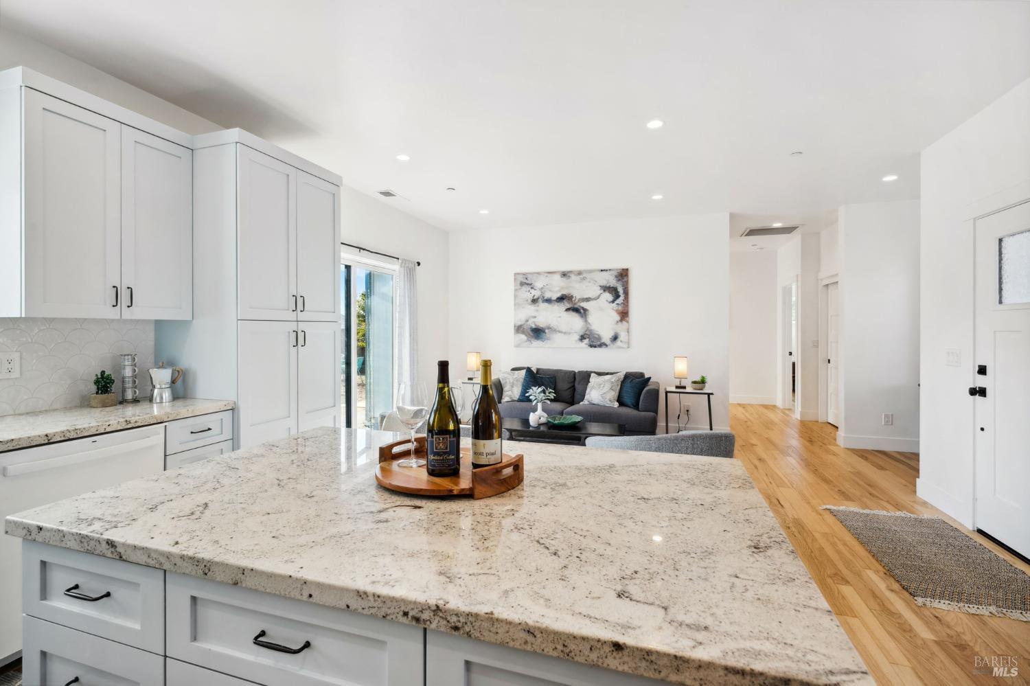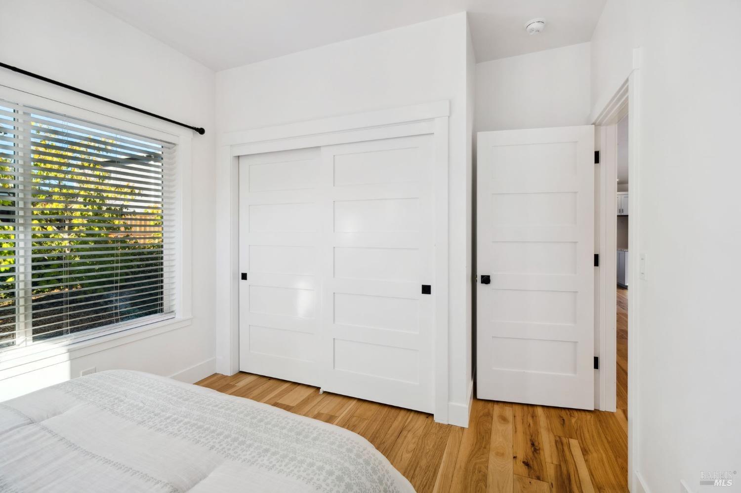 Attention Investors, Builders, and Those Seeking Privacy and Space! This custom-built 2-bedroom home, completed in 2021, is set on over half an acre, offering endless possibilities for expansion to add an ADU, gardens, or a pool. Located on a quiet lane near Coffey Park, it's conveniently close to schools, parks, and shopping, while providing ultimate privacy and views. The open floor plan features 9-foot ceilings, engineered hickory hardwood floors, and a bright, airy atmosphere. The kitchen includes granite countertops, a tiled backsplash, a large island, and soft-close cabinetry. Step outside to a private backyard with a spacious patio, redwood fencing, and mature fruit trees (apple, nectarine, pear, plum, apricot, pomegranate, cherry, and Meyer lemon). Raised garden beds are ready for planting. The primary bedroom has a walk-in closet and direct patio access, while the en-suite bath features custom-tiled flooring and a glass-enclosed shower. The second bedroom is generously sized, and the guest bath includes penny tile flooring and a subway-tiled tub/shower combo. Energy-efficient with central heat & air, all-electric utilities, and paid solar panels and pre-installed car charger in garage for low utility bills. Fridge NOT included, it was virtually added.